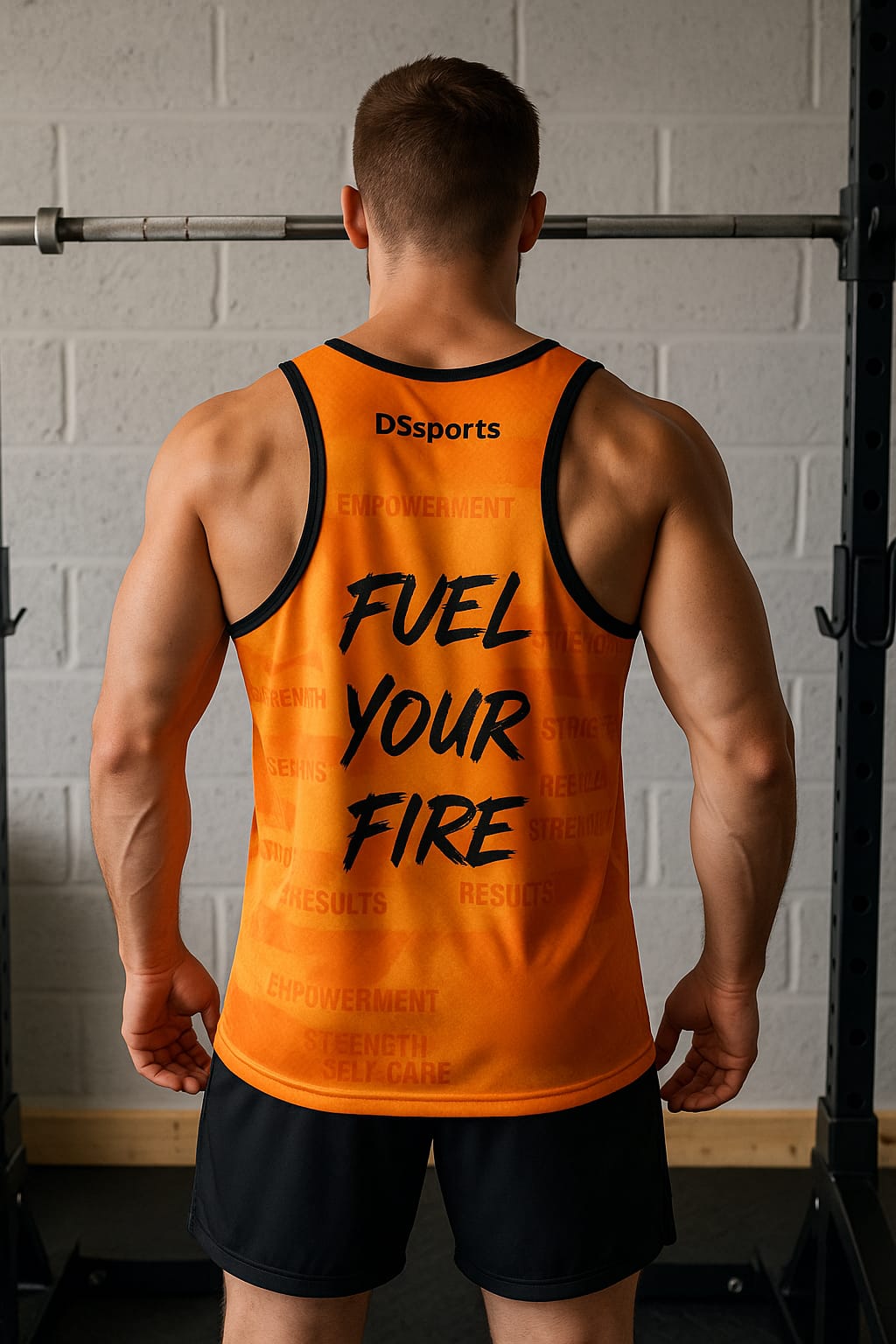 Turn heads and turn up the heat. The Fuel Your Fire singlet is built for movement, confidence, and that unstoppable energy that kicks in when you refuse to quit!