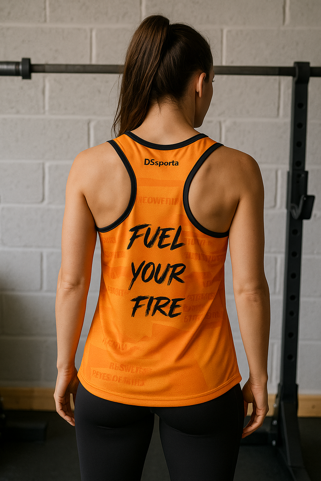 Turn heads and turn up the heat. The Fuel Your Fire singlet is built for movement, confidence, and that unstoppable energy that kicks in when you refuse to quit!
